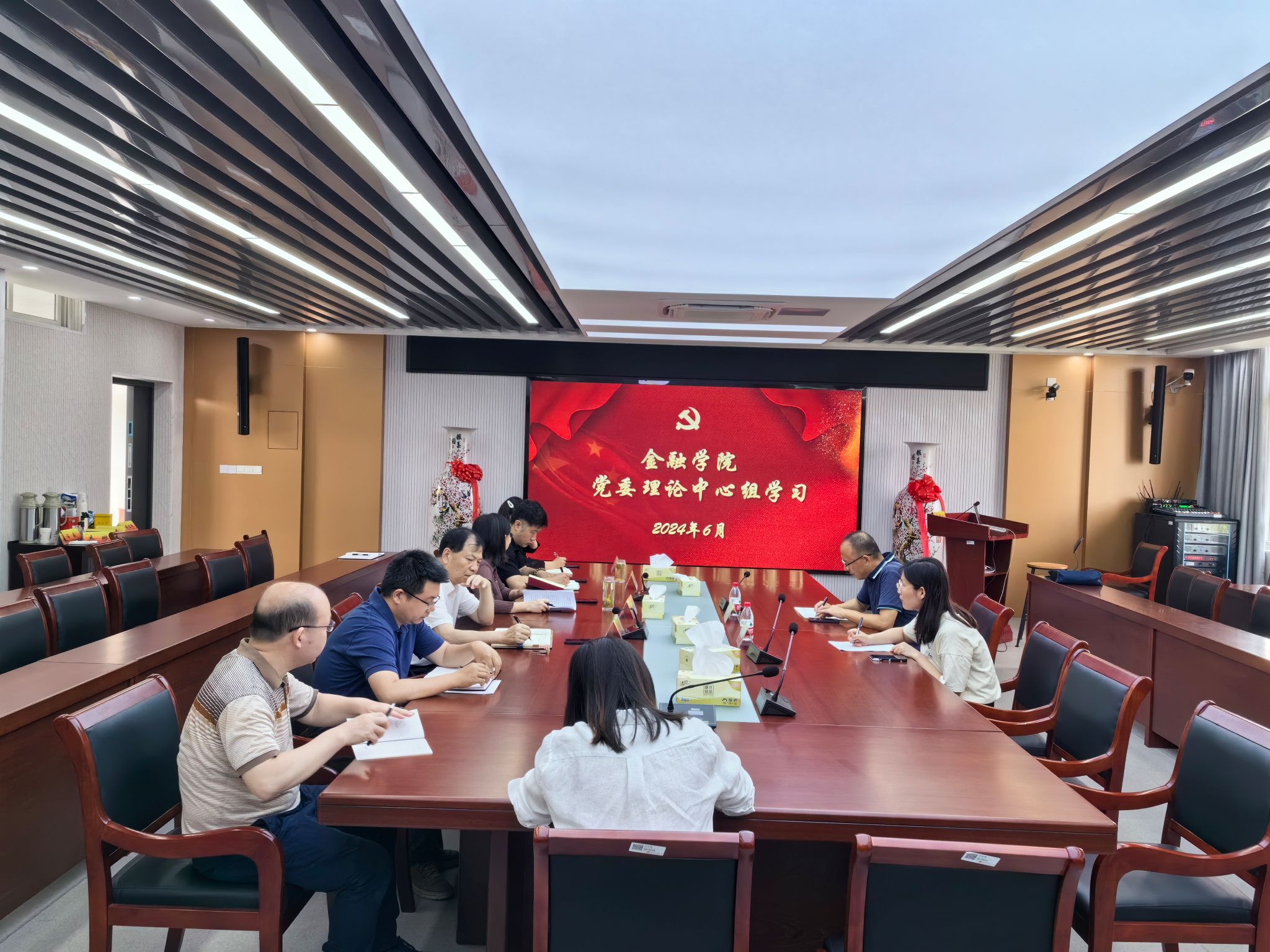 6月12日上午,金融学院党委理论学习中心组在德经楼508会议室召开党委理论学习中心组学习会。学院全体院领导参加了学习会,校党委宣传部副部长秦邵华、理论教育科高婷婷老师列席旁听。会议由院党委书记孙菲主持。孙菲书记传达了习近平总书记关于促进高质量充分就业的重要讲话精神。与会同志交流了学习体会。孙菲书记最后强调,一要深刻认识习近平总书记关于促进高质量充分就业的重要指示精神的重要意义。二要坚持多措并举,切实...