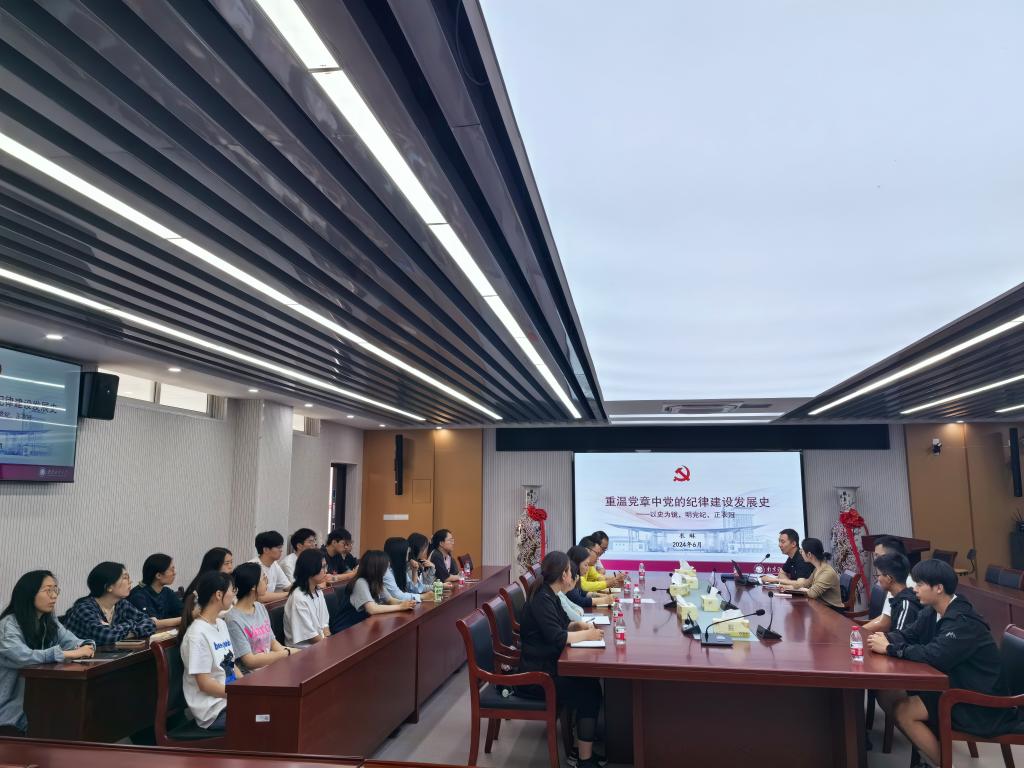 5月24日上午,金融学院党委书记孙菲在西苑五号宿管站“金小鳄”党员活动角给部分教职工党员和学生党员以“在学思践悟中增强党纪教育”为主题,讲授了一堂关于党纪学习教育的专题党课。孙书记从习近平总书记在二十届中央纪委三次全会上的讲话出发,围绕党的六大纪律,从“政治纪律、组织纪律、廉洁纪律、群众纪律、工作纪律、生活纪律”六个方面,结合金融学院“清廉金融”的特色名片和党员干部纪律教育的相关案例,强调了严格遵...