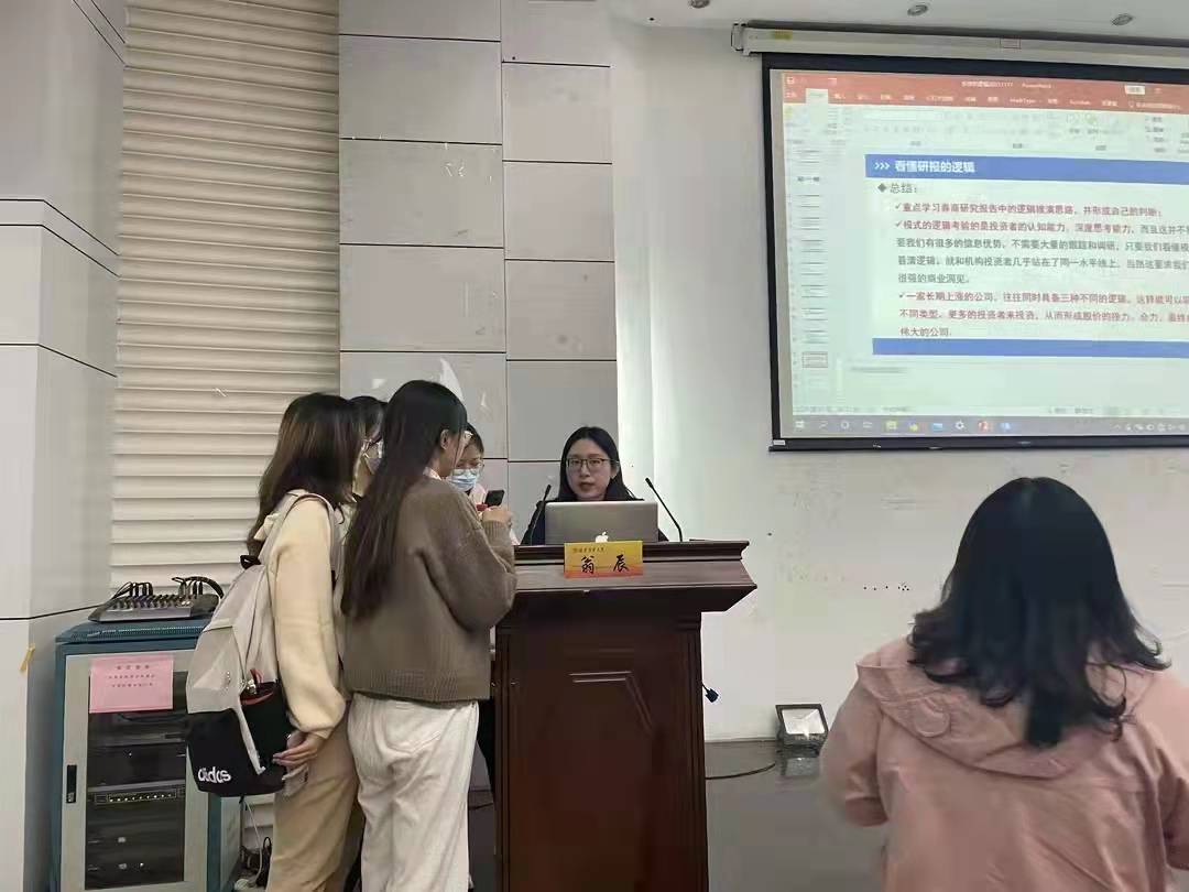 11月18日下午,金融学院教师第一党支部副书记翁辰老师受邀参加金融节模拟股市大赛,在仙林校区德经楼二楼双登报告厅给同学们讲授题为“投资的逻辑”主题讲座。