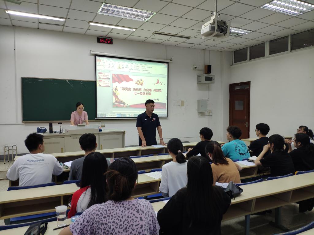 为学习感悟习近平总书记在中国共产党成立100周年大会上的重要讲话,金融学院党委副书记张士青于2021年7月2日在德经楼105给金工党支部全体党员上了一次“学党史、悟思想、办实事、开新局”七一专题党课,支部全体党员参加。