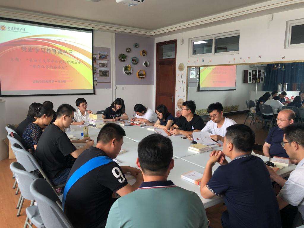6月16日下午,金融学院教师第一党支部开展了“社会主义革命和建设时期历史”以及“党在江苏的奋斗史”的主题学习,支部全体党员参加了本次学习。