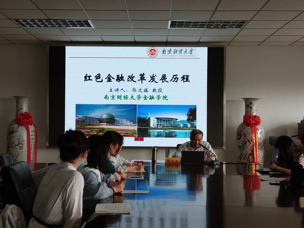 2021年5月14日下午,金融学院保险、信用党支部于仙林校区德经楼508室聆听主题为“红色金融改革发展历程”的党课,本次党课由金融学院副院长郭文旌教授主讲,辅导员王乐乐老师主持。