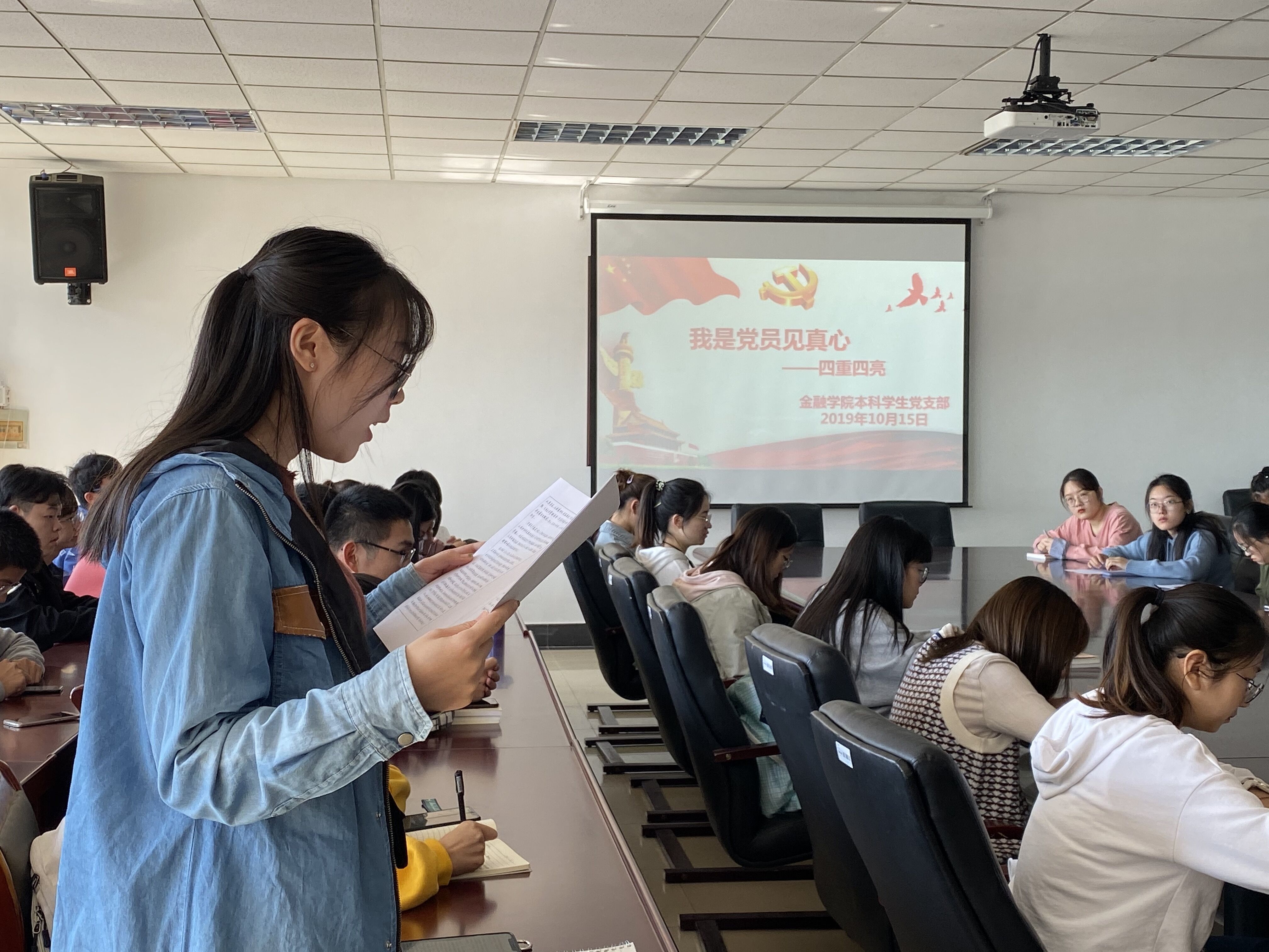 10月15日中午,直播性爱 本科生党支部在徳经楼508召开“我是党员见真心——四重四亮”主题会议。直播性爱 所有本科生党员及各学生党支部书记参加。