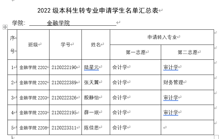 现将2022级申请转专业学生名单汇总公示如下: