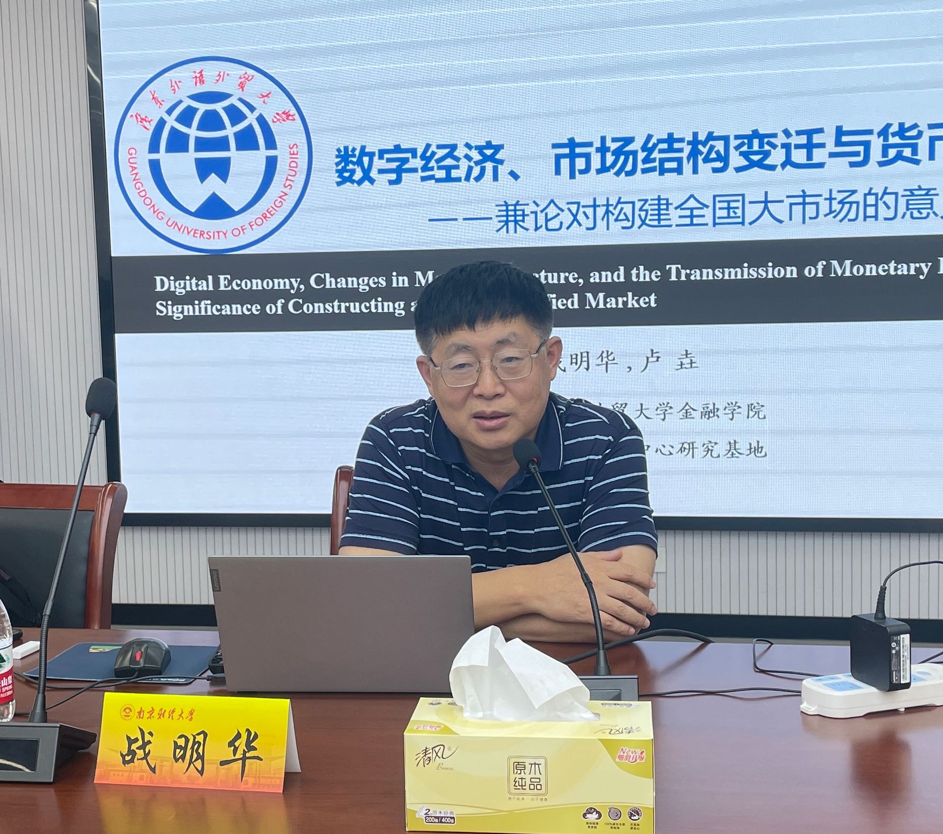 9月25日上午,应金融学院邀请,广东外语外贸大学金融学院战明华教授在仙林校区德经楼508会议室作了题为“数字经济、市场结构变迁与货币政策传导”的学术讲座。讲座由学院副院长尹雷主持。学院部分教师和研究生参加了讲座。