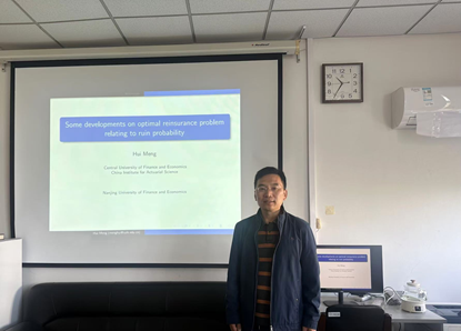 2024年10月20日上午,应金融学院邀请,中央财经大学孟辉教授做了题为“Some developments on optimal reinsurance problem relating to ruin probability”的学术报告。金融学院部分教师与研究生聆听了报告,报告由金融学院副院长姚定俊教授主持。