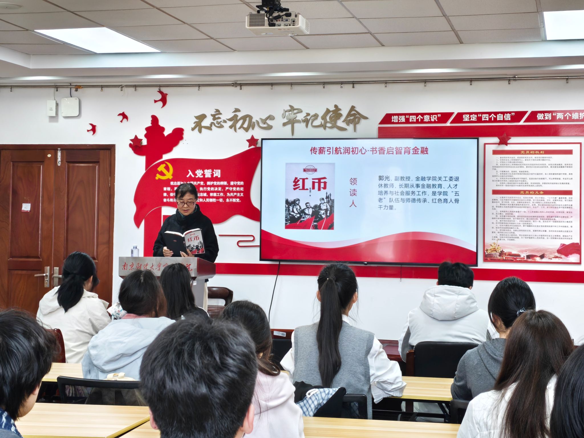 活动伊始,关工委退休教师郭光副教授领读红色小说《红币》,带领同学们重温革命年代,苏维埃国家银行成员以生命守护金融诚信,筑牢红色金融命脉的峥嵘岁月,感悟金融安全与国家安全的紧密联系,厚植爱国情怀与安全理念。
