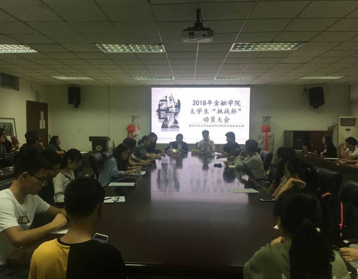 2018年9月13日晚18:00,金融学院2018年大学生“挑战杯”动员大会在德经楼508会议室举办。南京师范大学金融学教授封思贤老师、金融学院分团委学生会学术部分管主席邹琳、优秀学生代表蒋亚麒受邀出席,金融学院分团委学生会学术部部长高兴主持了本次大会。