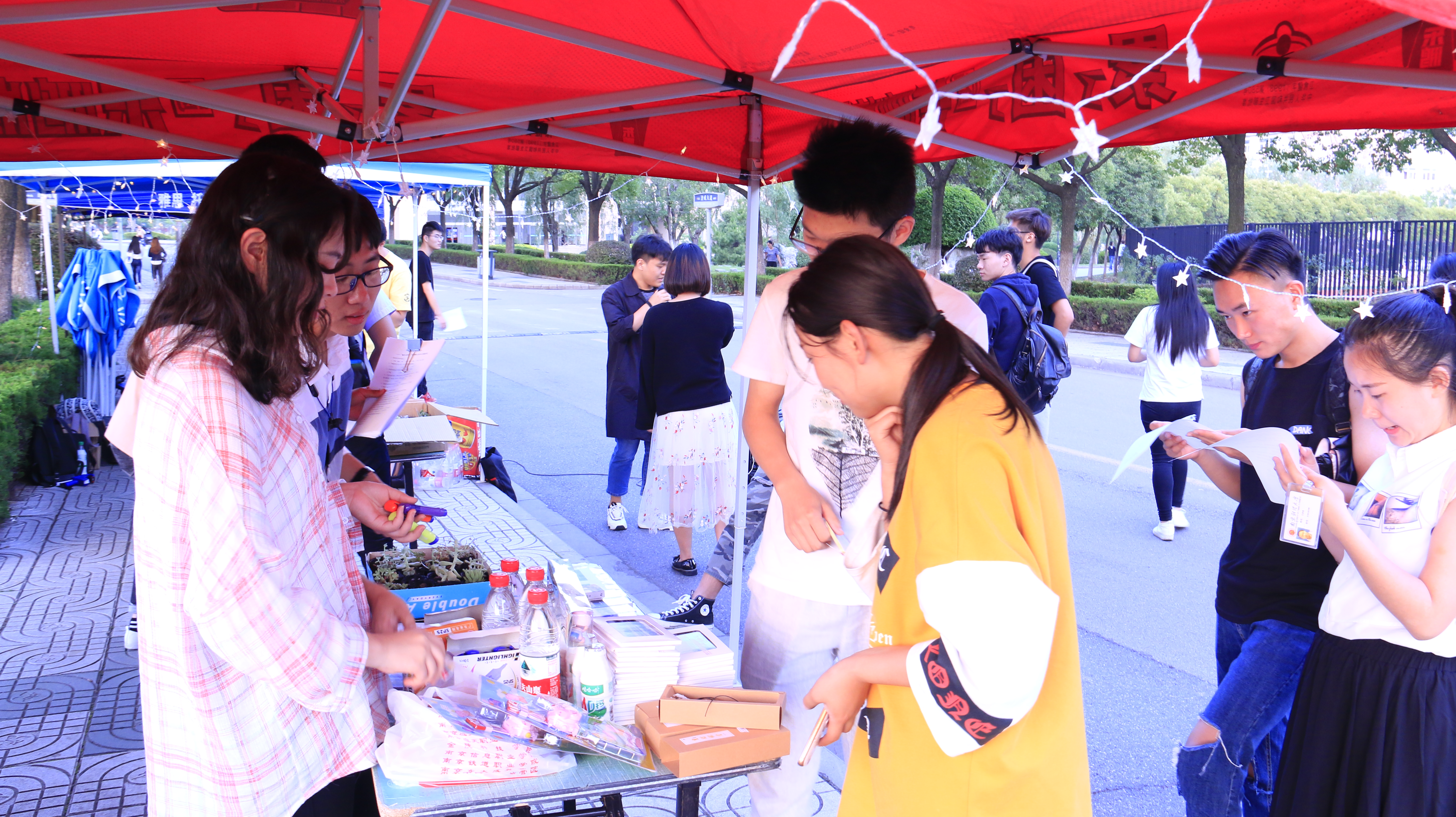 此次活动全校大四毕业生们捐赠了书籍、富有诚信特色的手工艺品和其他闲置物品,分别在“浓浓书香”、“脉脉情深”、“溜溜杂货”和“勃勃生机”四个主题摊位,进行义卖,合唱团与金属公社带来歌曲盛会更是将现场气氛推向高潮。
