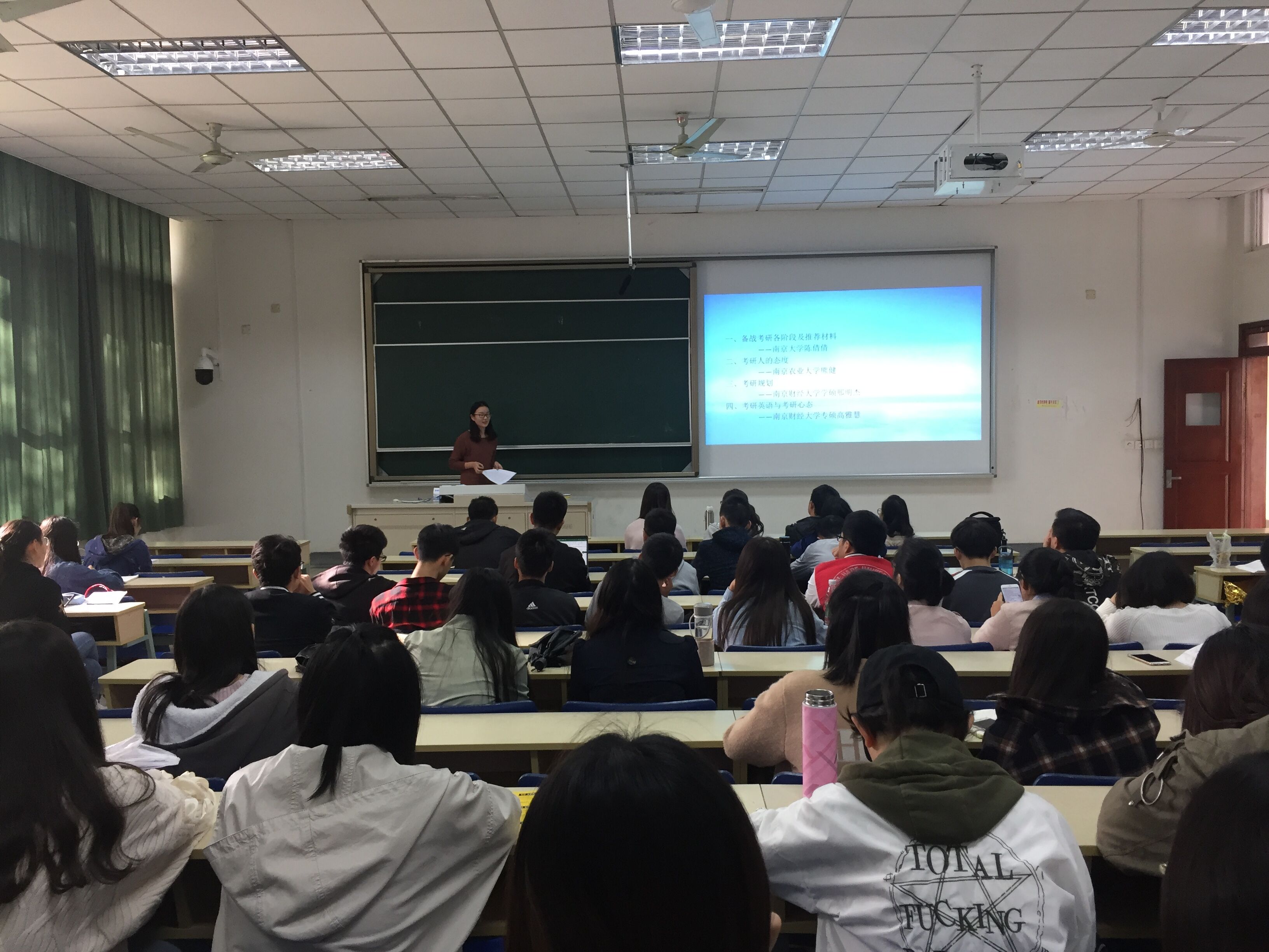 来自南京大学的陈倩倩学姐为同学们推荐了考研的参考材料并介绍考研方法。南京农业大学的熊健学长讲述了他考研胜利的秘诀:努力。直播性爱 的学硕刑明杰学姐介绍了如何选取学校和专业。直播性爱 专硕的高雅慧学姐,她从考研英语与考研心态两方面向在座的同学们分享了她的考研经验。