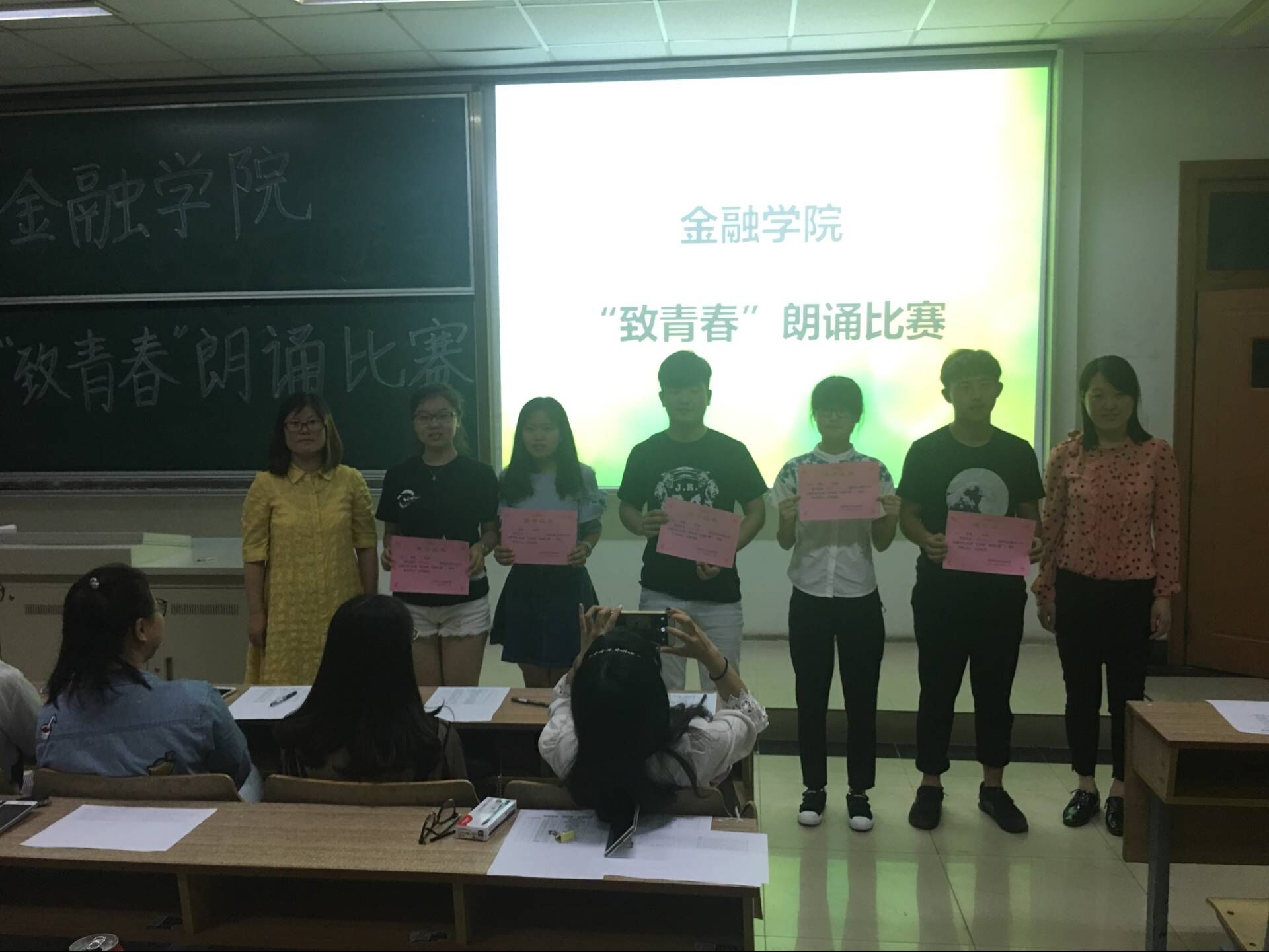为响应国家“全民阅读”号召,传承“五四”精神,加强学风建设,营造浓厚的校园文化氛围,5月18日晚,金融学院2016级学生在教C105室开展了“致青春”朗诵比赛。孙晓飞、庞威老师出席活动,院青助主席张慧敏同学及各班团支书担任评委。