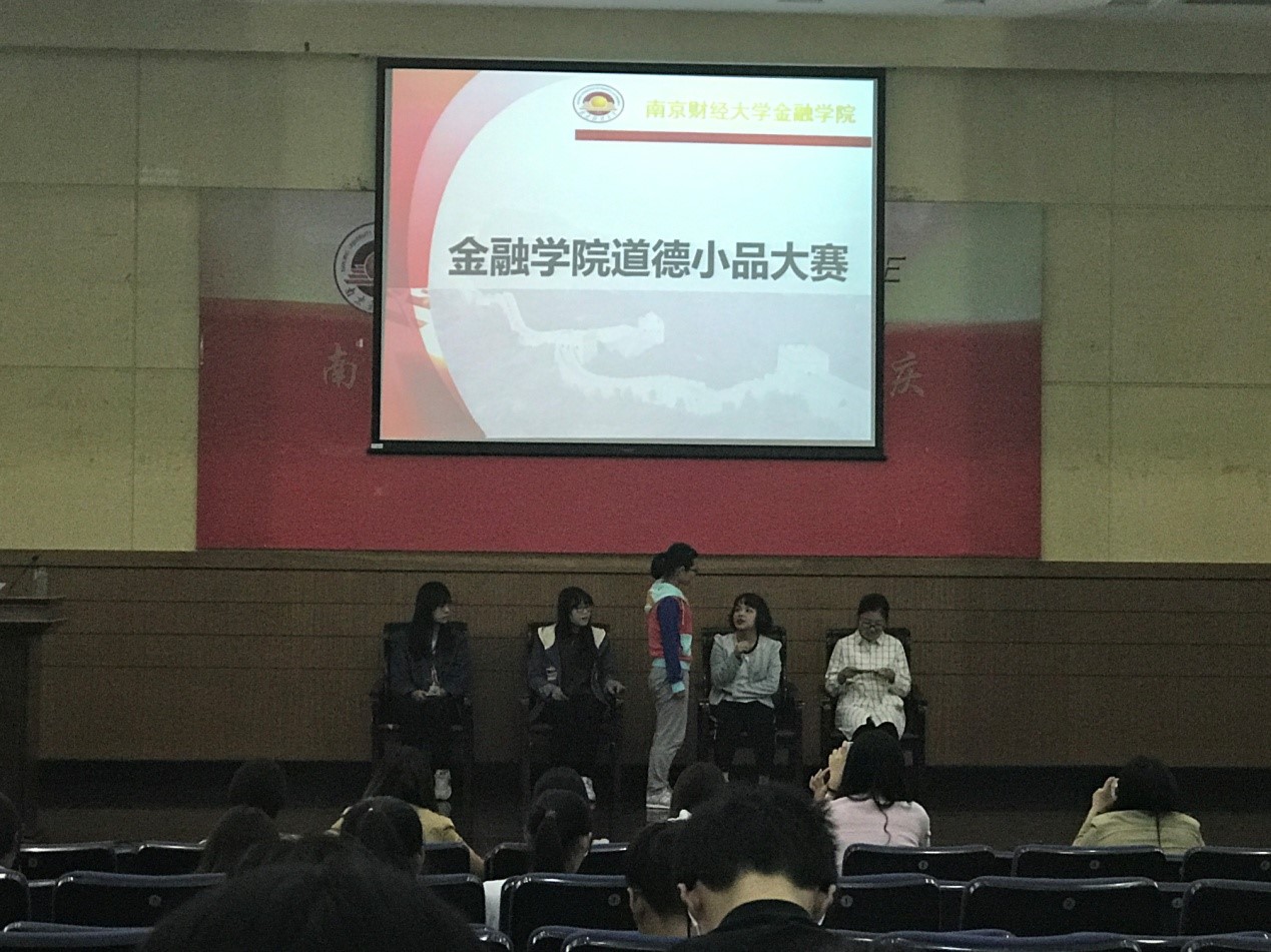 5月9日下午17:30,金融学院16级全体学生在管理学科楼二楼报告厅举办了道德小品大赛。本次比赛由孙晓飞、庞威二位老师担任裁判,各班选出三名同学作为评委,孙丰云老师担任主持。