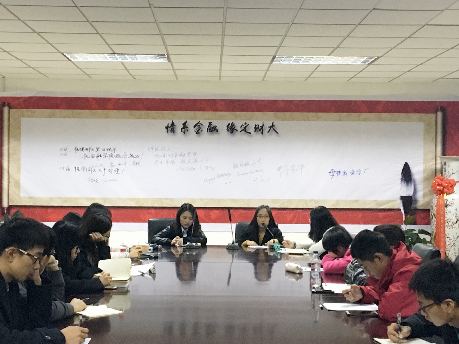 首先,分团委委员史惠莹祝贺各位同学能够成为金融学院第四届青马班的一员,并阐述了未来一年的青马班的建设构想,提出了对新一届青马班成员殷切的希望。