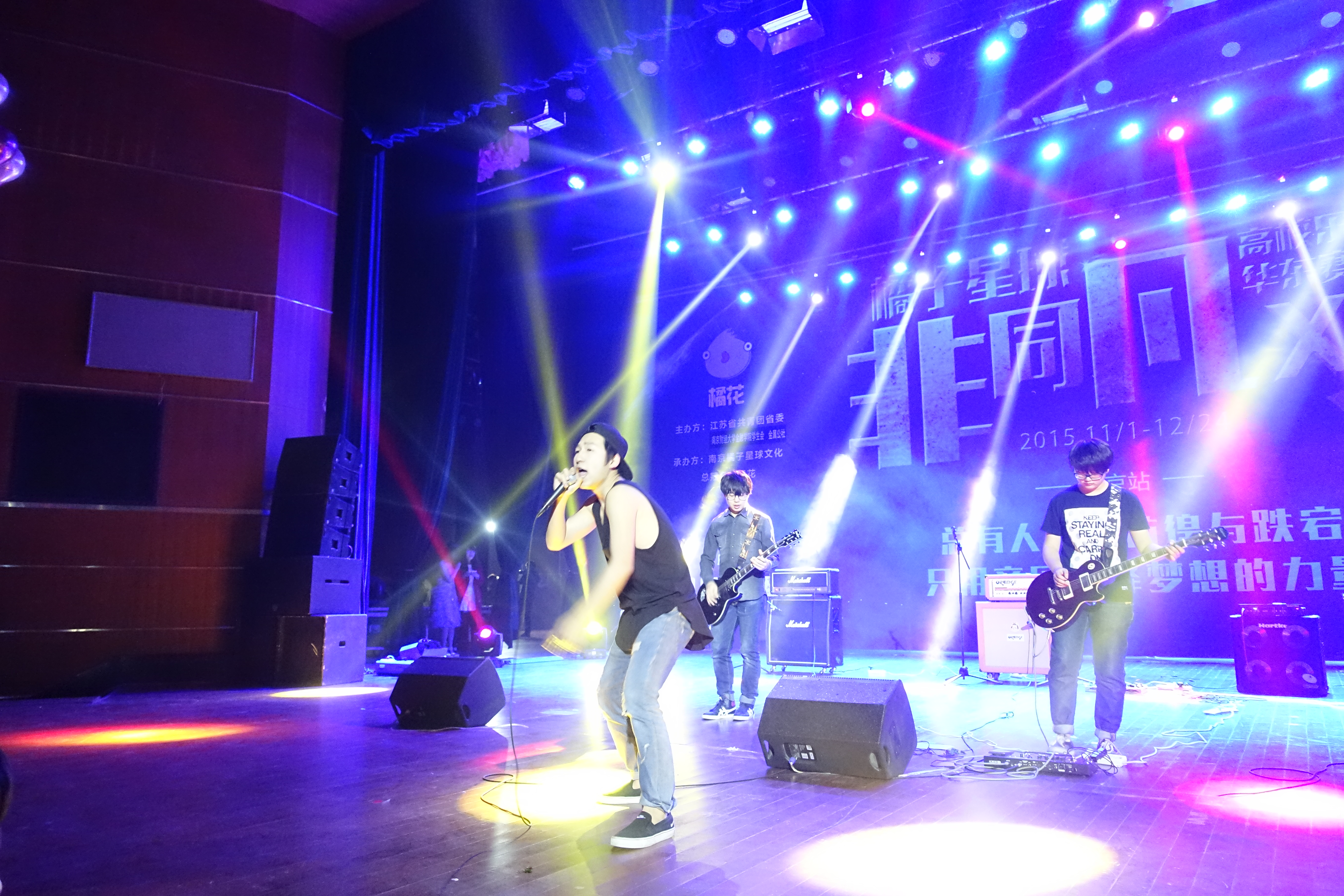 首先登场的是来自直播性爱 的OPEN乐队。这支年轻、充满朝气的乐队,用一首惊心动魄的It’s my life点燃现场观众的激情,让我们体会到了“无音乐,不快乐”的真正意义。随后上场的南京盲校的风车乐队让在座观众感动不已。音乐让他们走在一起,用不完美的身躯演唱卓越的梦想。来自南京邮电大学的ME乐队。他们用一首“Living After Midnight”开启了他们乐队的酷炫模式,“Have a nice day”以及一首中文歌“没人给你面子”更是为他们赢得了阵阵掌声和欢呼声。