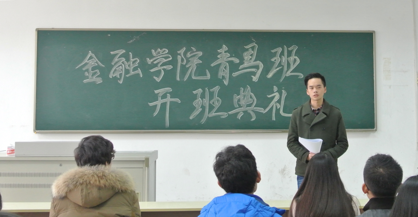 2015年12月10日十二,在经济学科楼201教师,举行金融学院青马班开班典礼。参与本次开班典礼的有金融院团委书记张士青、分团委副书记曾桀、分团委各部门委员助理以及43名通过选拔的优秀的青马班成员。