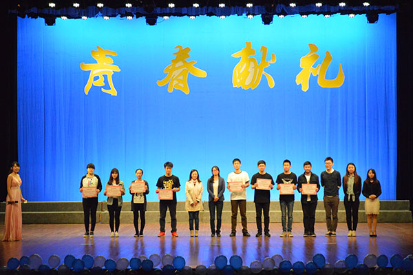 由各班代表共同演唱的《仰望星空》婉转悠扬;艺术团声乐队的《Cry on my shoulder》深情款款;艺术团舞蹈队带来的《Tiny》热情似火;抽奖环节惊喜连连;校十佳歌手宋蔚现场演唱《背叛》更是沸腾全场,掀起高潮••••••整场晚会盈溢着浓浓的欢乐与温馨。