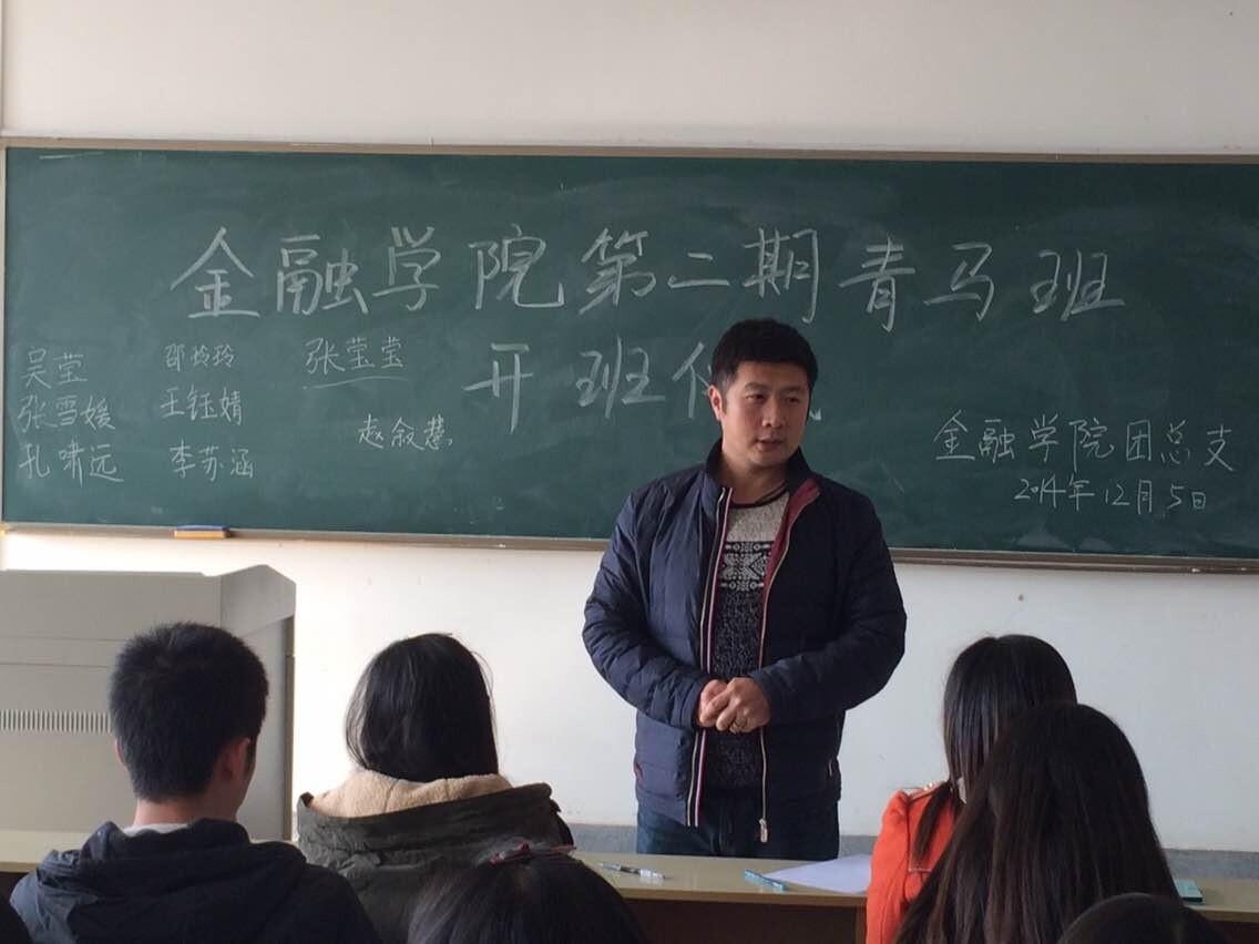 12月5日,金融学院青马工程班开班仪式于经济学科楼203教室举行,团总支书记张士青老师,团总支副书记谢海鸥,团总支各位委员,及所有青马班学员参加了此次开班仪式。会议由孙嘉豪、张淑婷二位同学主持。