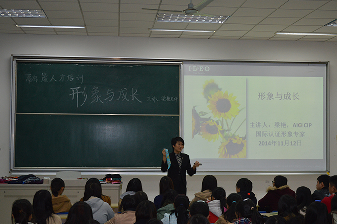 11月12日,金融学院邀请国际认证形象专家梁艳老师来校举办讲座。本次讲座共分两场:上午在经济学科楼508会议室对金融和工商学院的老师进行培训,下午则在经济学科楼113教室对学生进行指导。讲座现场座无虚席,互动频频,气氛热烈。