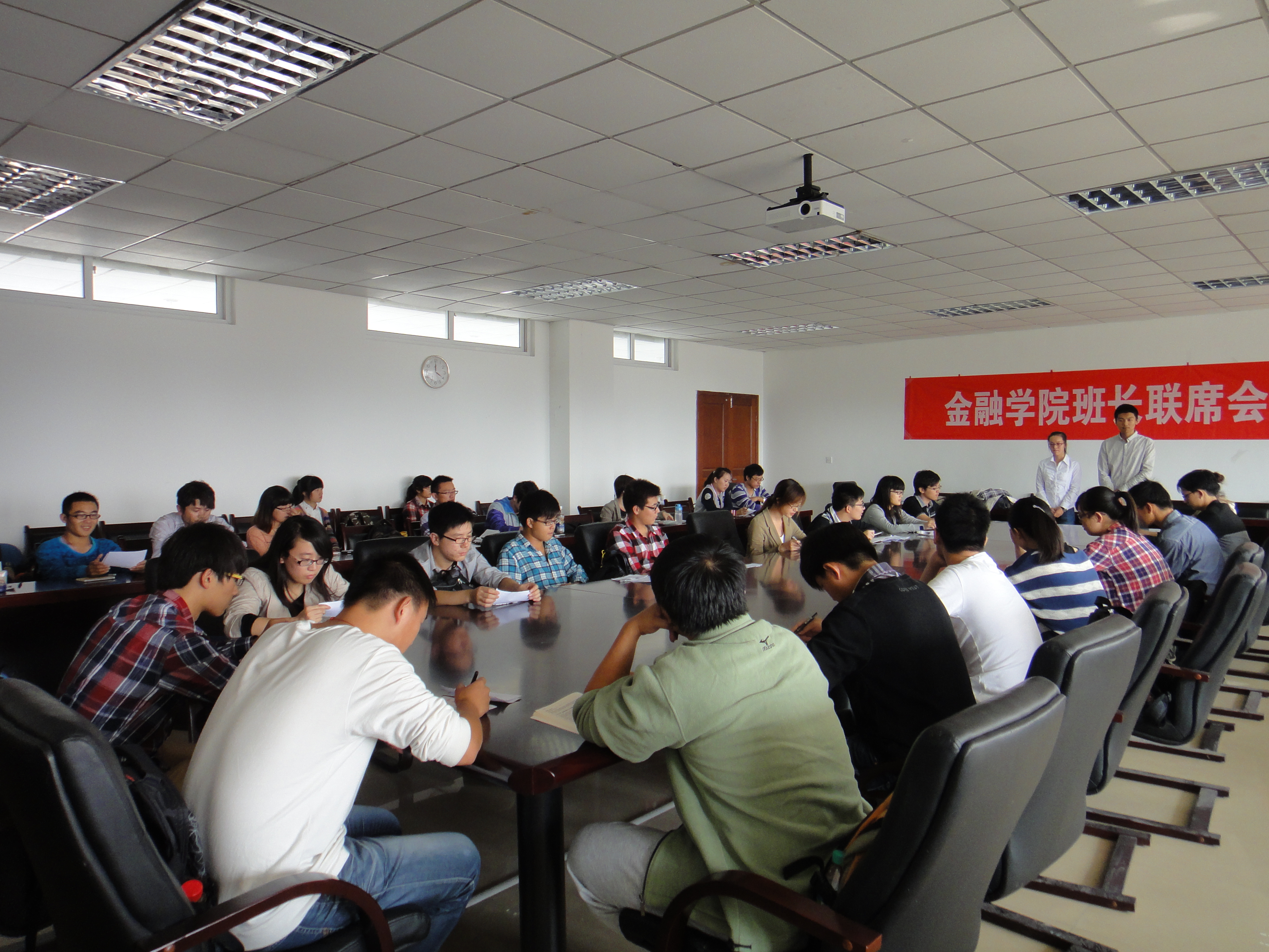 10月15日中午12:30,金融学院班长联席会选举大会召开。与会的有团总支吴丹老师,团总支副书记顾庆鹏以及各级联席会会员。
