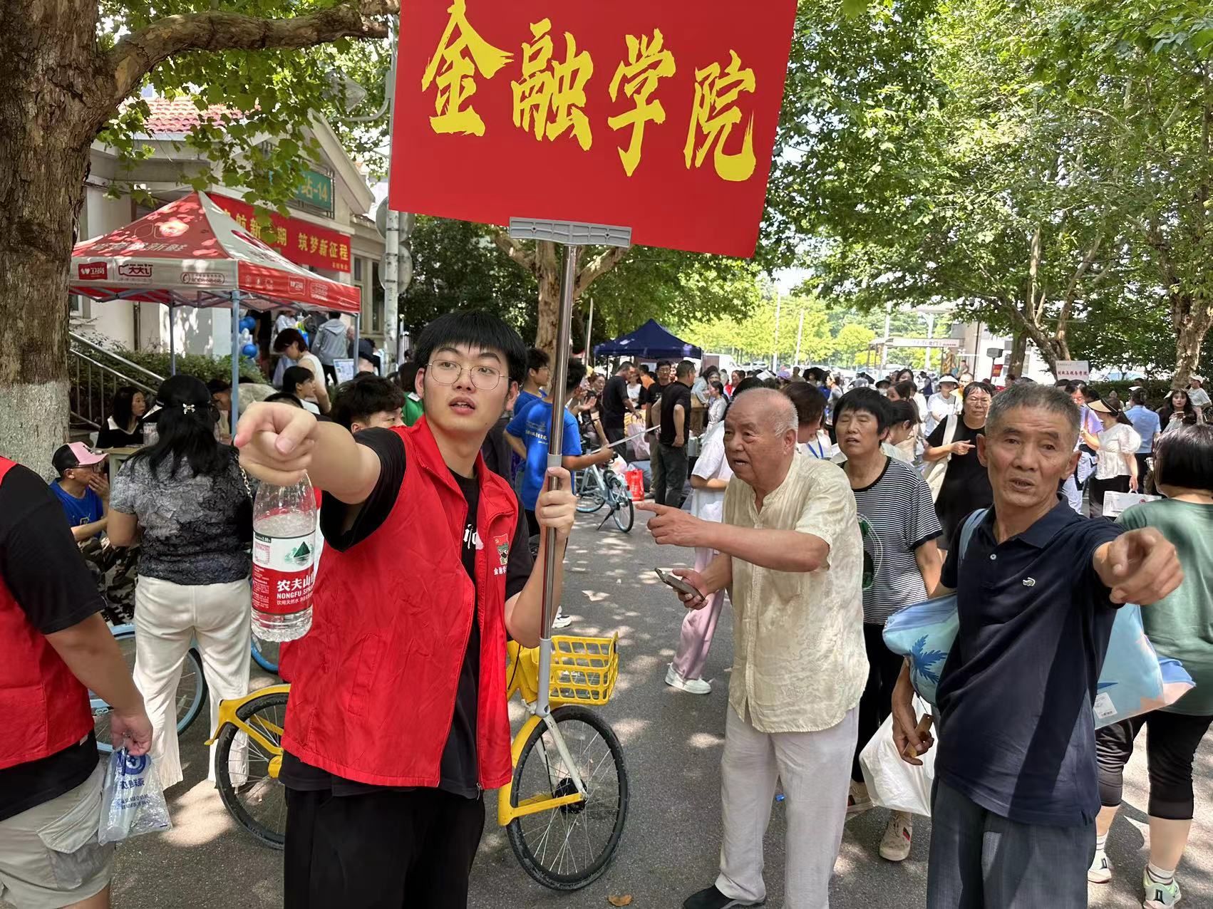 黎明破晓,伴随着金色阳光与金小鳄的灿烂笑容,金融学院的大门缓缓开启,志愿者们早已穿戴整齐,他们身着红色的志愿者马甲,胸前点缀着活泼可爱的金小鳄图案,以满腔热忱迎接新面孔的到来。随着一辆辆载满行李的车辆缓缓驶入校园,志愿者们帮助新生搬运行李,引导他们前往宿舍区。金小鳄的憨态可掬与志愿者的热情服务相映成趣,使得迎新现场洋溢着温馨与欢愉。