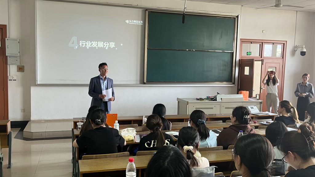 4月17日下午在博远楼406,金融学院邀请东方财富证券股份有限公司南京团队负责人马旭东总监、HRBP孟晨东、施雅欣,给24届毕业生进行了一场求职干货&金融行业前沿分享会。