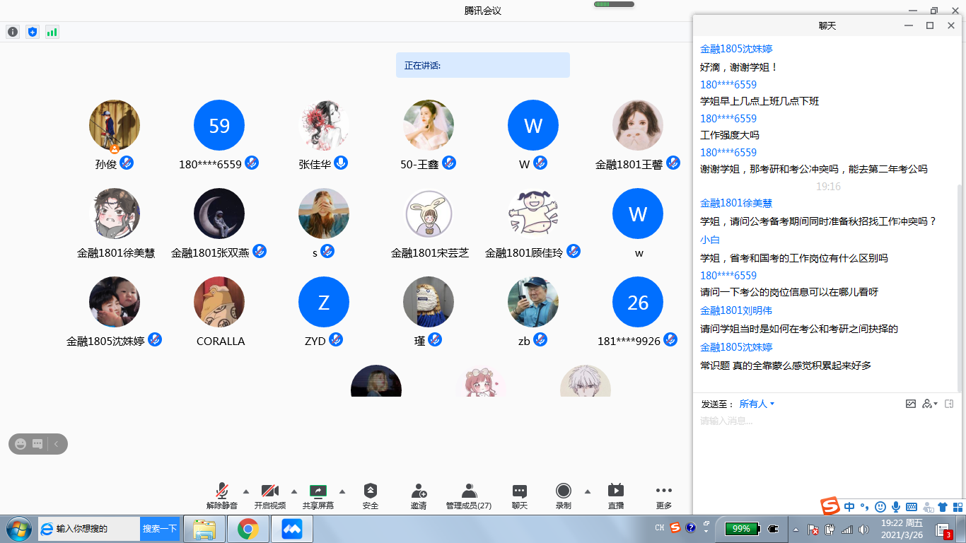 为帮助直播性爱 大三同学更全面了解求职就业信息,3月26日晚6点半,直播性爱 金融学系孙俊老师主持召开“商业银行、公务员招录专场线上求职经验分享会”。报告人分别为直播性爱 金融2016级校友张佳华,现就职于国家税务总局上海市徐汇区税务局;金融2016级校友王鑫,现就职于招商银行南京分行,春招还收到中信银行杭州分行、光大证券南京、招商证券上海等Offer。