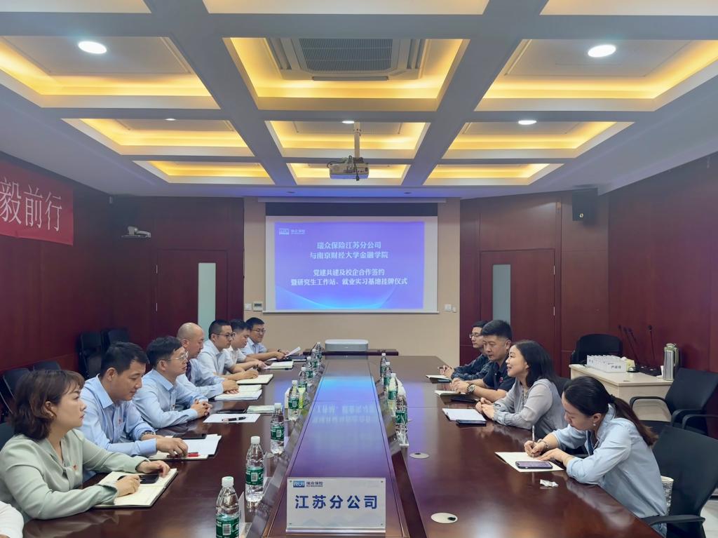 5月29日,金融学院党委书记孙菲一行前往与瑞众保险江苏分公司,举办了党建共建暨校企合作签约挂牌仪式。此次活动旨在进一步推动双方党建工作的创新发展,加强校企之间的深度合作,提升人才培养质量和金融服务水平。