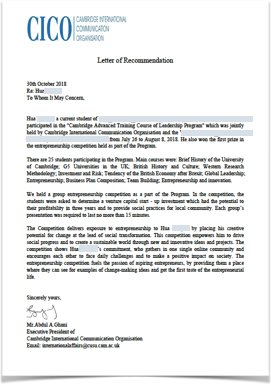 结业成果:课程结束后,学生的学习档案将被归档保存,并获得剑桥相关培训机构颁发的访学证明证书、项目导师推荐信,表现突出的学生还将获得剑桥项目组奖学金。