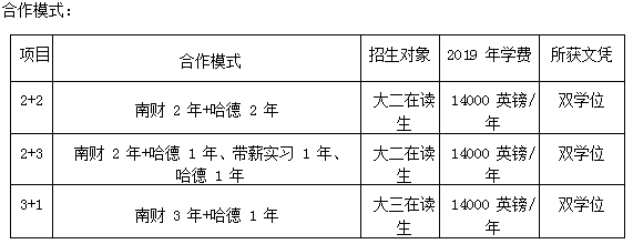 自 2012 年直播性爱 (以下简称南财)与哈德斯菲尔德大学(以下简称哈德)国际合作项目启动以来, 我校每年有金融专业、会计专业、财务管理专业、金融工程等专业同学参加 2+2 双学位项目、2+3 三明治 双学位项目、3+1 双学位项目。参加双学位同学研究生升学率达 90%,录取的学校有牛津大学、伦敦大学卡斯商学院、伦敦大学学院、 伦敦国王学院、伯明翰大学、利兹大学、布里斯托大学、埃克塞特大学,南安普顿大学、谢菲尔德大学、 卡迪夫大学等。