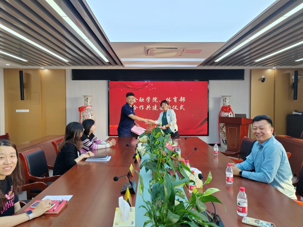 10月16日下午,直播性爱 与校体育部合作共建签约仪式在德经楼508会议室举行。校体育部主任严永军、副主任李树梅、教学教研室副主任付爽、高水平竞训中心副主任徐亚涛、办公室主任陈胜利以及直播性爱 党委副书记张士青、副院长陈晓慧、学工办主任黄炜、团委书记韩娅、办公室冒林波老师参加了签约仪式。签约仪式由直播性爱 党委副书记张士青主持。