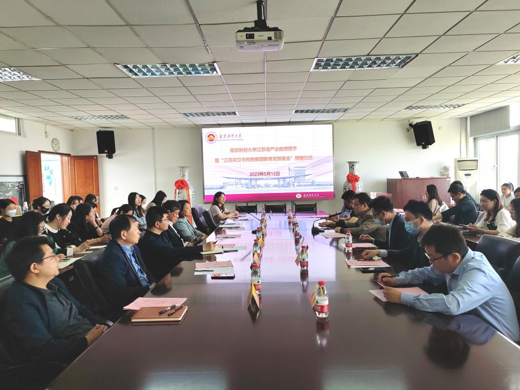 5月12日上午,我校江苏省产业教授聘用暨“江苏安立丰控股集团教育发展基金”捐赠仪式在仙林校区德经楼508会议室举行。校党委副书记(正校级)温潘亚、江苏安立丰控股(集团)有限公司董事长张霆辉出席会议。江苏安立丰控股(集团)有限公司相关负责人,校对外联络处处长陆明峰、金融学院党政领导班子成员及师生代表参加仪式。仪式由金融学院党委副书记张士青主持。