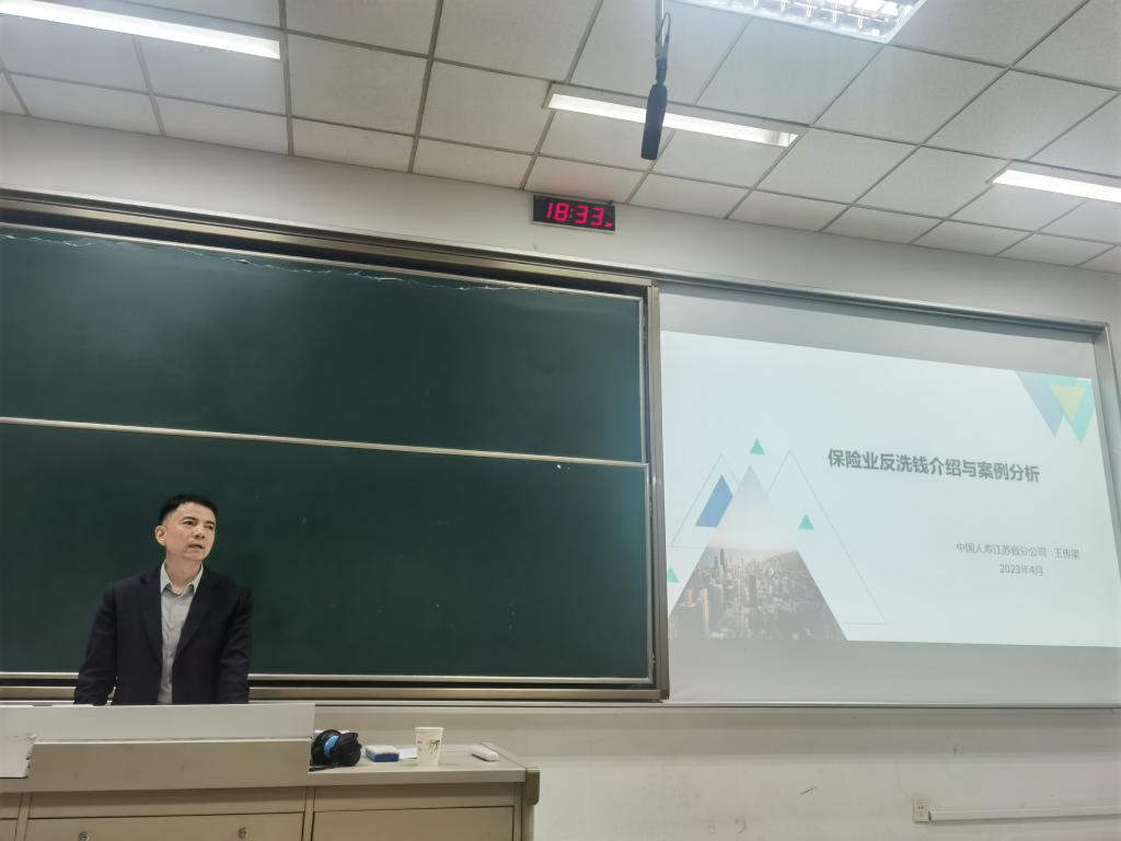 为进一步深化当代大学生对反洗钱相关法律法规的了解,增强大学生反洗钱风险意识,4月3日晚,直播性爱 开展了“保险业反洗钱介绍与案例分析”讲座,邀请中国人寿江苏省分公司的王传梁专家进行现场授课、为同学们答疑解惑。