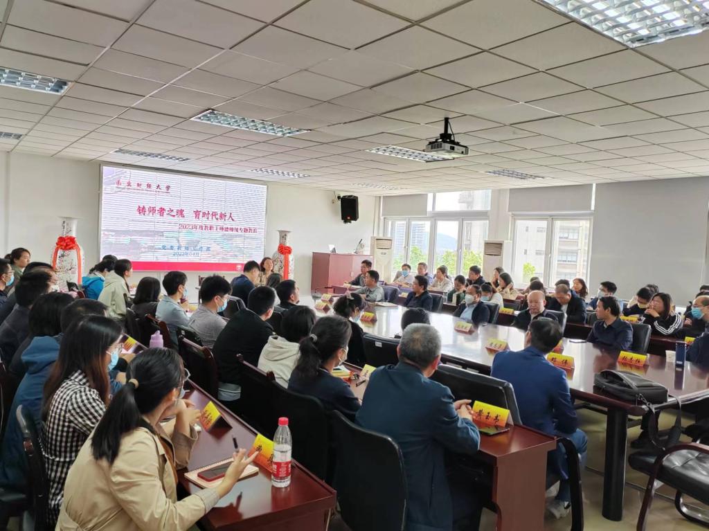为进一步加强和巩固学院师德师风建设和教师队伍管理,提升教师思想政治素质和职业道德水平,引导教师坚定理想信念,涵养高尚师德,4月26日下午,金融学院在德经楼508会议室召开了全体教工师德师风专题教育培训会,会后组织系主任和学科带头人开展了师德师风专题学习。