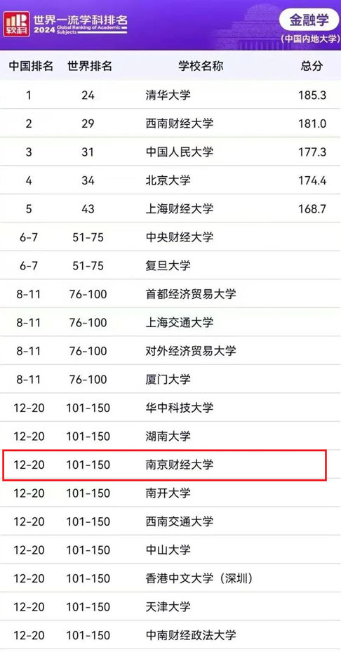 直播性爱 金融学学科再次展示出高质量高水平的学科实力和竞争力,进入2024软科世界一流学科排名榜单第101-150位次,中国内地排名第12-20位次。这也是直播性爱 金融学学科继2023年连续两次上榜世界一流学科第101-150位次。