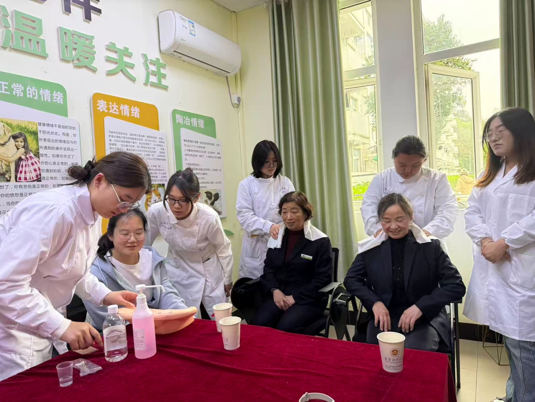 中医特色体验环节中,花茶品鉴、耳穴埋籽、颈肩推拿、八段锦练习等丰富项目依次开展,让同学们在沉浸式体验中近距离感受中医药文化的独特魅力,切实掌握实用的日常养生方法。活动现场,宿管阿姨们也主动参与其中,与同学们一同体验中医护理的益处,她们亲切叮嘱同学们规律作息、劳逸结合、爱护身体,朴实的话语里满是关怀,为活动增添了浓浓的暖意与归属感,成为“一站式”学生社区联动共建中一道暖心的风景线。
