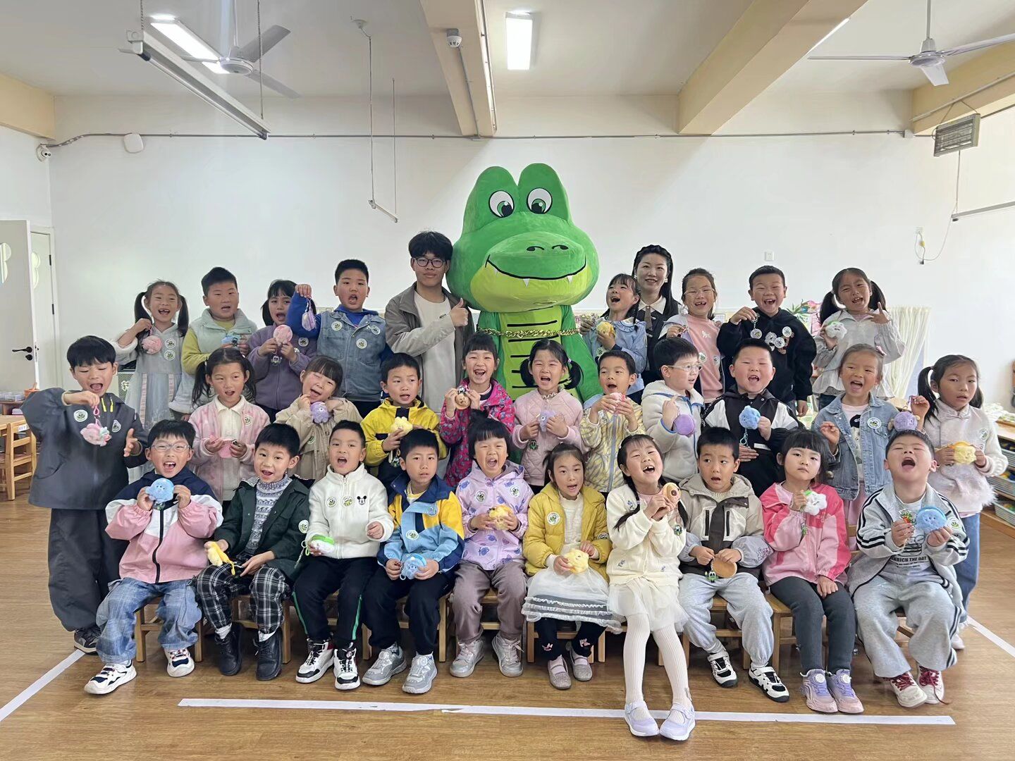 4月24日,鸿运嘉园幼儿园的孩子们迎来了一位特别的新朋友——金融学院吉祥物“金小鳄”。在学院本科生第五党支部组织的“红色基因·财智萌芽”基层联建活动中,这只憨态可掬的“财智启蒙大使”为党员志愿服务活动注入了新鲜活力。