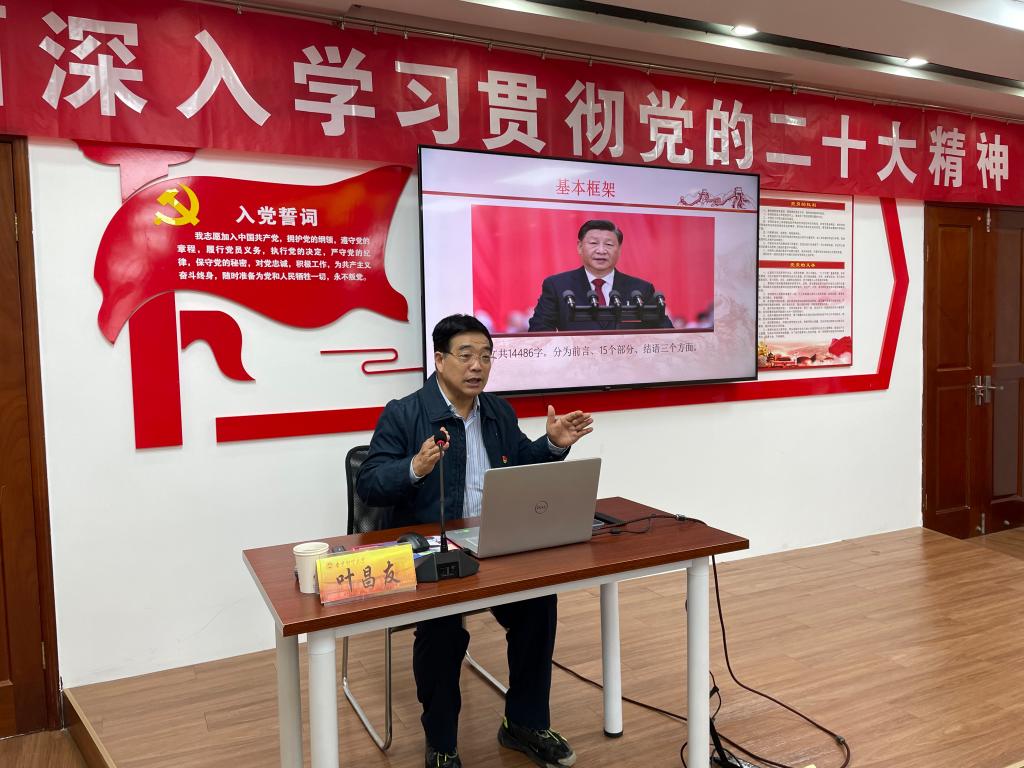 叶昌友教授紧紧围绕党的二十大报告要点开展论述,并就报告中的重要论断进行解读,包括报告提出的“三个务必”、新时代十年的伟大变革、习近平新时代中国特色社会主义思想的世界观和方法论及贯穿其中的立场观点方法、新时代新征程中国共产党的使命任务、以中国式现代化全面推进中华民族伟大复兴等。叶昌友教授说,习近平总书记所作的党的二十大报告体现了深远的战略思维、强烈的历史担当、真挚的为民情怀,我们要以党的二十大精神为引领干出成绩,学、思、悟、行相结合,增强责任感与使命感,以一域之光,为全局添彩。
