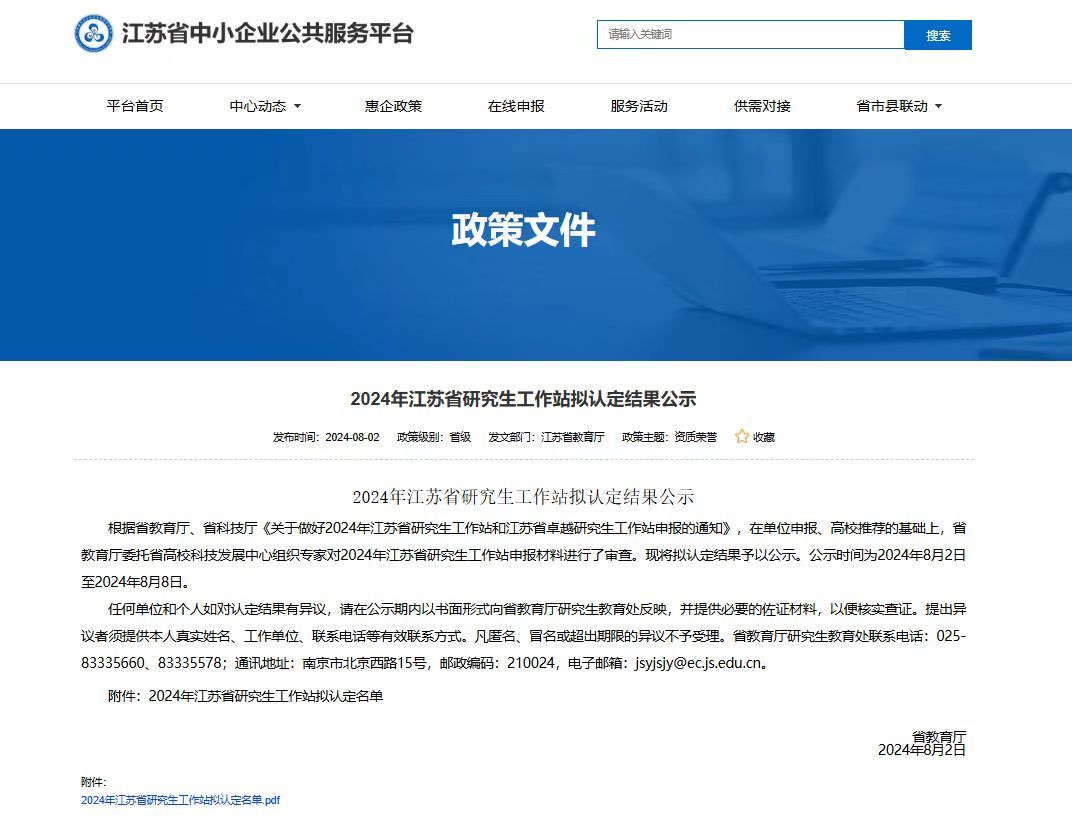 江苏省研究生工作站认定有效期为4年,认定期满须申请期满验收。期满验收优秀的,授予“江苏省优秀研究生工作站”荣誉称号,并自动进入下一轮认定有效期;验收合格的,重新获得江苏省研究生工作站授牌,并进入下一轮认定有效期。
