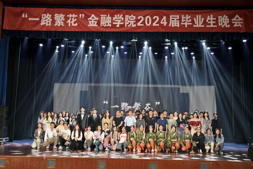 5月24日晚,金融学院“一路繁花”2024届毕业生晚会于大学生活动中心举行。金融学院党政领导班子成员、教师代表、毕业班辅导员携同2024届毕业生相聚参会。院党委孙菲书记对同学们寄予厚望,希望同学们不忘初心、牢记使命,做有理想信念的青年。“鲜衣怒马少年时,不负韶华行且知。”《闹海》开场,翻阅朝气澎湃的青春乐章;《遥远的她》唱响,回忆大学四年的点点滴滴;《Thirsty》舞动,踏遍青年学子的激情与梦想;《See you aga...